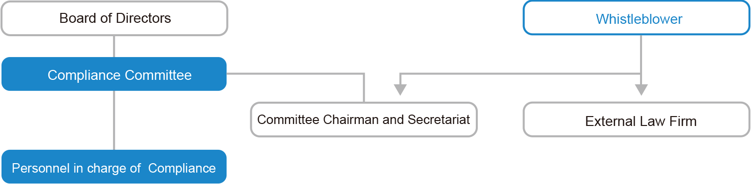 To prevent and promptly detect and correct any violations of laws and regulations, we operate an internal reporting system (“Mikuni Helpline”) with contact points at an external law firm and the Compliance Committee Secretariat within our company. This system is based on confidentiality obligations and the prohibition of any disadvantageous treatment of users, and is designed to comply with the Whistleblower Protection Act, ensuring a structure that guarantees secrecy and independence.