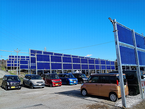 今回導入する設備には、従来型に加え、地面に対してパネルを垂直に設置する「垂直設置型太陽光発電」を採用します。両面受光型パネルにより朝夕の光を効率的に取り込み、積雪や埃による発電低下も抑制できるため、狭小地や駐車場でも高い発電効率を実現します。用地毎に最適な形状のパネルを設置することにより、当事業所の遊休地および駐車場を有効活用し、駐車場での導入規模としては国内最大級となる見込みです。第1期工事は既に完了し、今年2月より段階的に電力供給を開始しました。2028年の全面稼働時の総発電量に対するCO2排出削減量は、年間約1,100t-CO2 ※1に相当し、太陽光発電が当事業所の総電力消費量の約35%を賄う計画です。