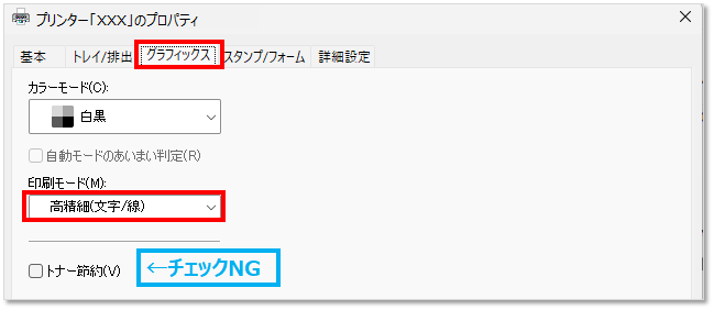 3)「グラフィックス」や「印刷品質」タブを選択。